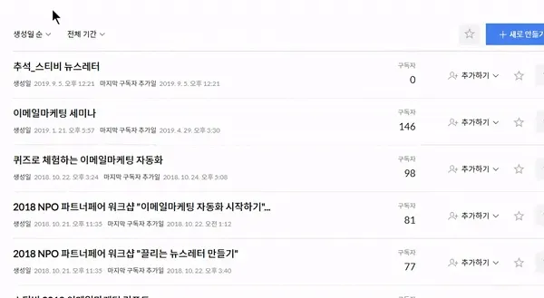 이메일 목록 화면 개선, 주소록 목록 화면 개선, 구독자 목록 화면 개선 등