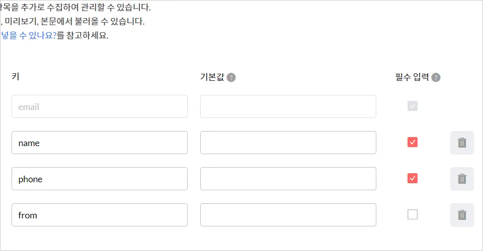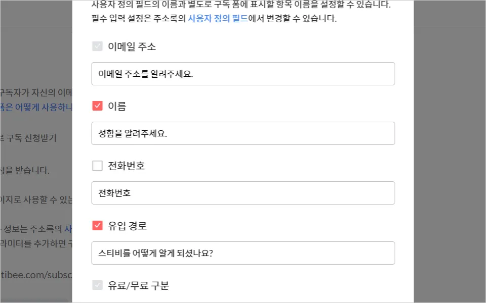 구독 폼 입력항목 표시 이름 설정