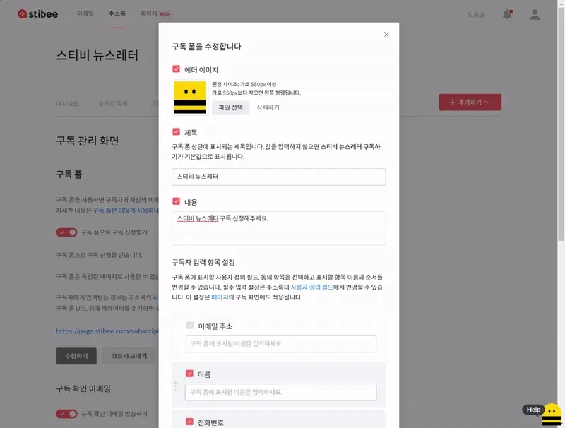 구독 폼, 페이지 등 구독 화면에 표시되는 사용자 정의 필드의 순서를 변경할 수 있습니다. 예를 들어, 필드를 만든 순서와 상관없이 이메일 주소보다 이름을 면저 표시해 입력받을 수 있습니다.