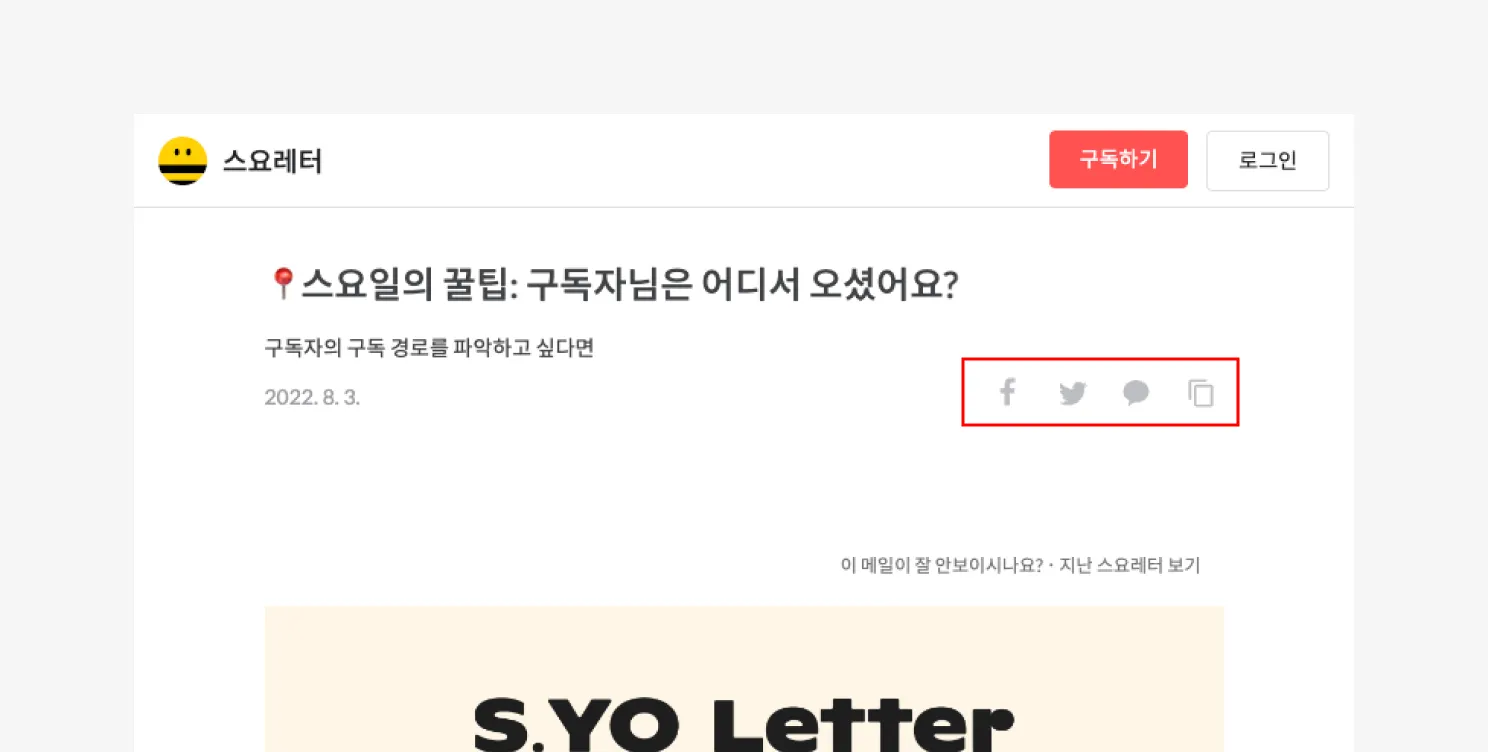 페이지와 페이지에 발행된 이메일을 쉽게 공유할 수 있습니다. 페이지 URL을 공유하면 프로필 이미지, 뉴스레터 제목, 짧은 소개가 미리보기로 표시되고, 페이지의 콘텐츠 URL을 공유하면 이메일에서 설정한 공유 정보가 표시됩니다.