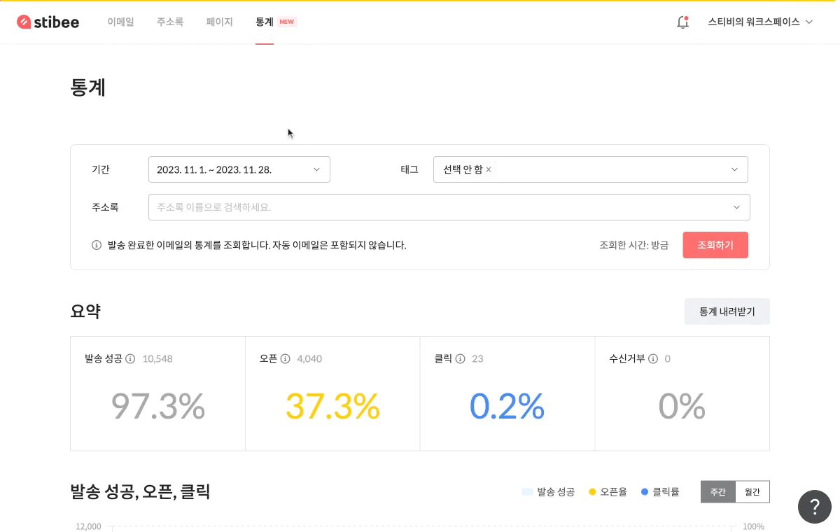 여러 이메일을 선택해 통계 데이터를 조회할 때, 매번 여러 이메일을 하나하나 선택하는 게 번거롭지 않으셨나요? 이메일을 태그로 관리하고 계시다면, 태그로 묶인 이메일을 한 번에 선택해 통계 데이터를 조회할 수 있습니다. 혹시 아직 태그 기능을 활용하고 계시지 않다면, 지금부터라도 태그 기능을 활용해 이메일을 관리해 보시는 건 어떨까요? *프로 요금제부터 사용할 수 있습니다.