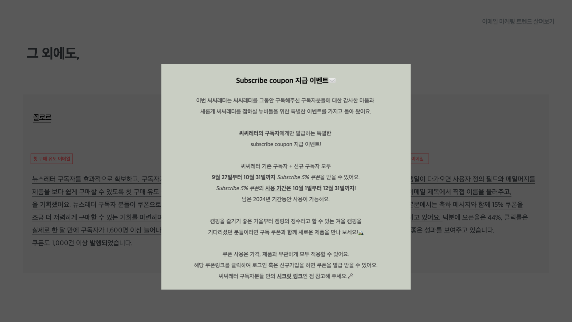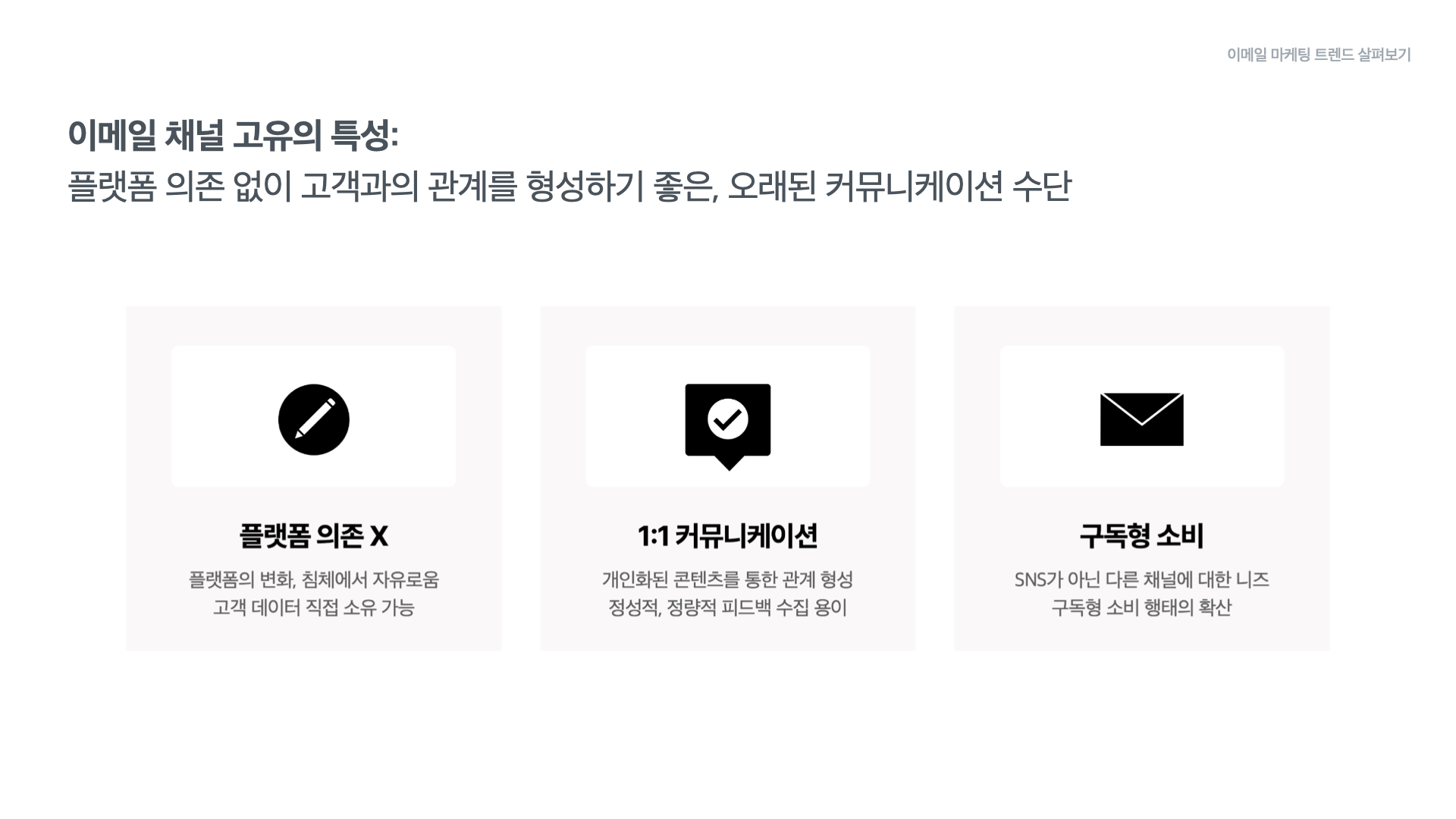 - 이메일은 구독형 소비 방식과 잘 맞는 채널입니다