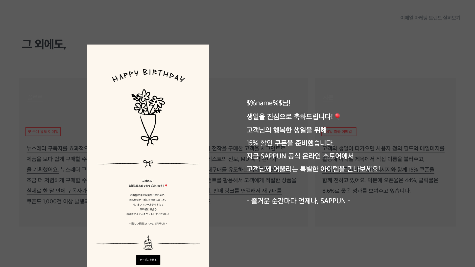 브랜드에서 보내는 생일 축하 이메일: 사뿐