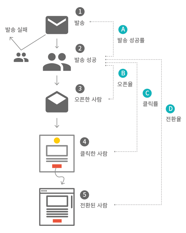 Ⓓ 전환율 = ⑤ 전환된 사람 수 ÷ ② 발송 성공 수 × 100