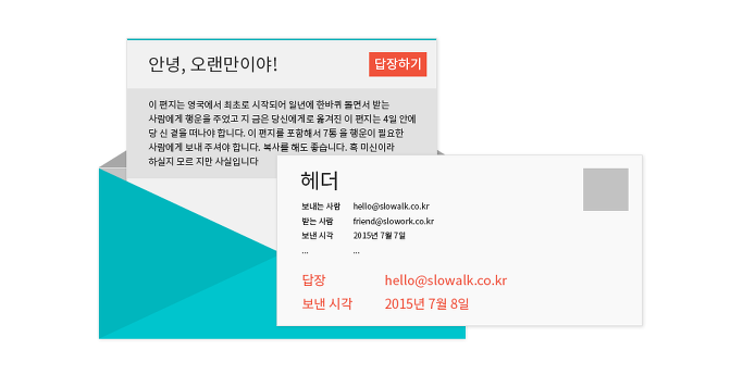 답장을 쓰고 보내기 버튼을 누르면, 헤더에 답장(reply) 정보가 기록되고, 이메일은 다시 새로운 여행을 떠납니다.