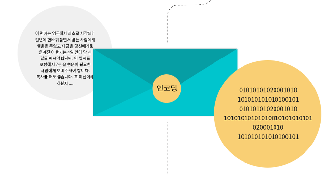 이메일의 내용을 컴퓨터가 이해할 수 있는 언어로 변환을 해줘야 하는데, 이 과정을 ‘인코딩(encoding)’이라고 합니다. 간혹 인코딩이 잘못되면 이상한 외계어가 표시되기도 합니다. 알맞은 방법으로 변환된 이메일은 보낸 사람과 가장 가까운 첫 번째 메일 서버로 전달됩니다.