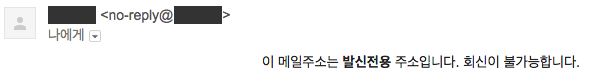 “이 메일주소는 발신전용 주소입니다. 회신이 불가능합니다.”라고 적힌 이메일을 받아보신 적 있으신가요? 이런 이메일의 발송자 정보를 보면 “no-reply@***.com”이라고 되어있는 경우가 많습니다.