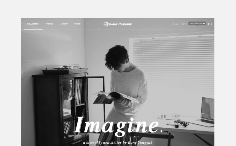 K-pop 그룹 B.A.P의 리더이자 프로듀서, 그리고 현재 솔로 아티스트로 활동 중인 방용국의 일상과 관심사를 담은 뉴스레터 <Imagine.>. 아날로그 방식을 사랑하는 그는, 자신의 소식을 궁금해하는 팬들과 더욱 깊게 소통하고자 뉴스레터라는 방식을 선택했다고 합니다.