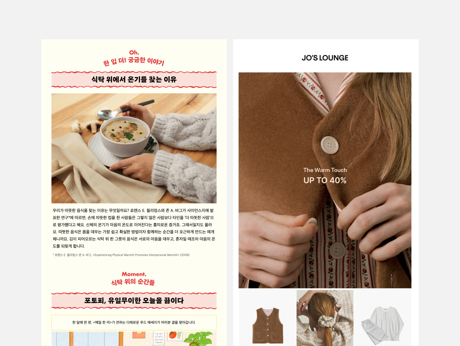 목적과 대상을 정했다면, 이제 이메일에 어떤 콘텐츠를 담아 보낼지 고민할 차례입니다. 이메일 마케팅에는 신상품 홍보를 위한 프로모션 이메일, 브랜드 스토리를 담은 뉴스레터 등 다양한 형태가 있습니다. 이메일은 다른 채널보다 내용을 자유롭게 구성할 수 있다는 장점이 있습니다. 우리 브랜드 톤앤매너와 어울리면서도 이메일 마케팅 목적을 달성할 수 있는 형태를 기획해 보세요.