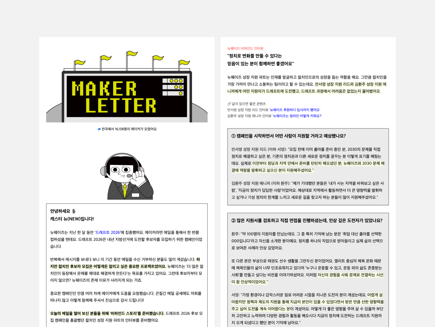 이메일 마케팅은 기획, 콘텐츠 제작, 데이터 분석, 성과 개선의 단계를 반복합니다. 성과를 판단할 때는 구독자 수, 오픈율, 클릭률, 전환율 등 다양한 지표를 참고할 수 있습니다. 중요한 것은 모두가 중요하다고 말하는 지표가 아닌, 우리 이메일 마케팅 목적에 맞는 핵심 지표를 설정하는 일입니다. 예를 들어 정기적으로 보내는 뉴스레터라면 '오픈율'을, 프로모션 이메일이라면 '구매 전환율'을 목표로 삼고 결과를 점검할 수 있습니다. 우리 브랜드는 어떤 지표로 이메일 마케팅 성과를 판단해야 할까요? 지금 한 번 생각해 보세요.