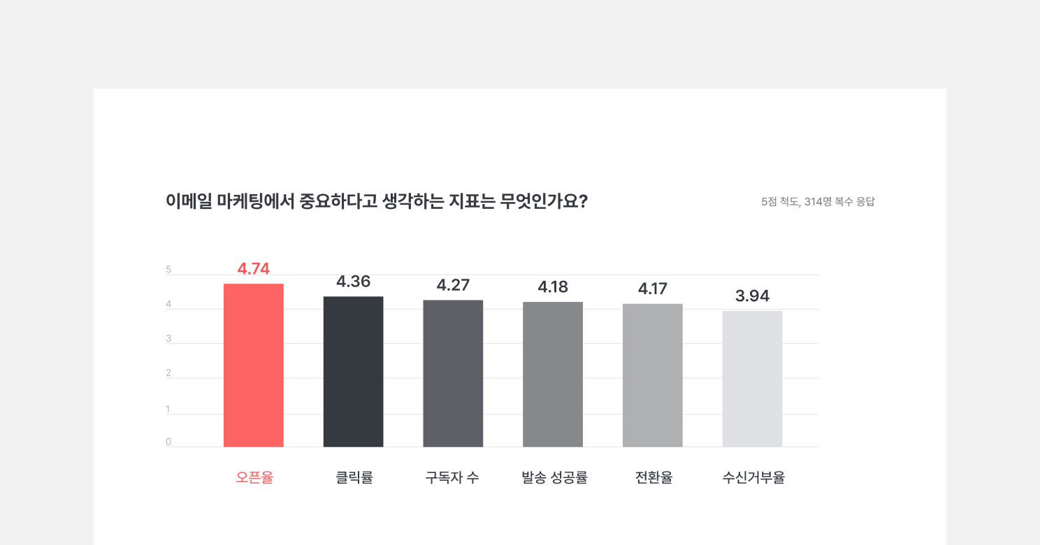 이메일 마케팅은 비교적 비용 부담이 적고, 시작하기 쉬운 채널입니다. 좋은 이메일 마케팅 성과를 얻고 싶다면, 아래 다섯 가지 질문을 참고해 우리 브랜드에 맞는 마케팅 전략을 세워보세요.