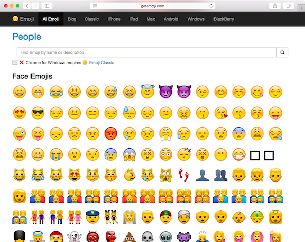 이모지는 아직 몇 가지 문제를 가지고 있습니다. 최근의 표준화 노력에도 불구하고, 아직 실제 사용 환경에서 완전히 표준화 된 것은 아닙니다. 디바이스 또는 이메일 서비스에 따라 이모지가 다르게 표시될 수도 있고, 아예 표시되지 않을 수도 있습니다.