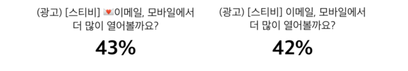 지난 주 스티비는 A/B 테스트를 통해 제목에 이모지가 포함된 경우와 포함되지 않은 경우를 비교해봤습니다.