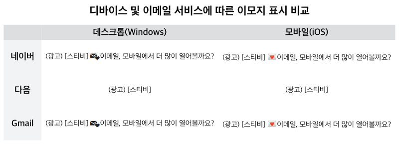 모든 구독자를 만족시킬 수는 없습니다. 구독자의 이메일 사용 환경을 확인해보고, 이모지를 지원하는 이메일 사용 환경을 가진 구독자가 충분히 많다면 이모지 사용을 검토해볼 수 있을 것입니다.