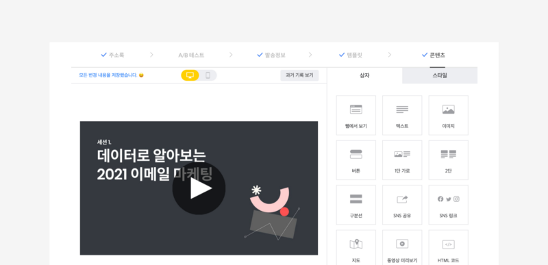 계속해서 ‘안된다.’, ‘안된다.’라는 말만 되풀이했던 것 같은데요😅 화려한 기능을 탑재한 멋들어진 이메일을 만드는 것도 좋지만, 어떤 구독자가 어떠한 환경에서 보아도 최대한 동일한 결과를 볼 수 있도록 안정적인 콘텐츠를 제공하는 것이 더 중요하지 않나 싶습니다. 지메일을 사용하는 구독자는 잘 보이는데, 아웃룩을 사용하는 구독자에게는 어떤 한 이미지가 보이지 않는다거나 해서는 안 되겠죠? 앞으로 HTML 상자를 사용하실 때는 “호·환·성” 이 세 글자를 기억해주세요😊