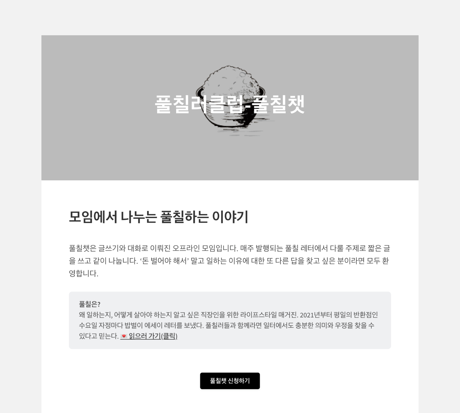 '밥벌이의 기쁨과 슬픔'을 나누는 뉴스레터 <풀칠>입니다. 사회 초년생의 이야기로 시작해 이제는 5년째 K-직장인으로 사는 경험에 대해 이야기합니다.