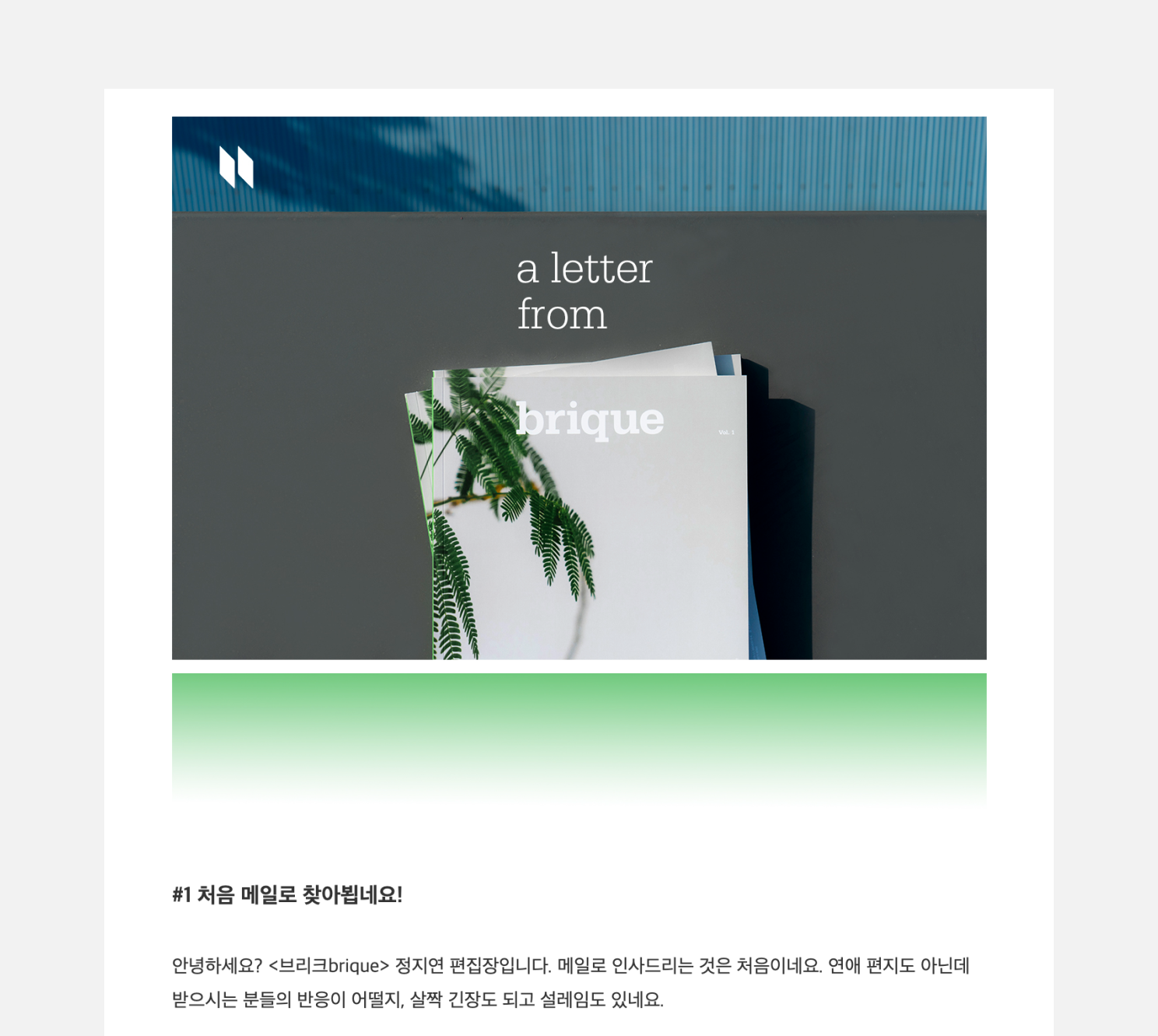 매주 하나의 뉴스레터를 발행하는 것은 분명 쉽지 않은 일입니다. 하지만 꾸준한 뉴스레터 발행은 단순히 콘텐츠를 자산화하는 것 이상으로, 구독자에게 신뢰를 쌓는 방법이 되기도 합니다. 특히 <브리크>처럼 정해진 요일과 시간에 뉴스레터를 발행하는 것은 구독자의 일상 속에 자연스럽게 우리 뉴스레터를 스며들게 하는 효과적인 전략입니다. 루틴이 쌓여 구독자와의 관계를 더욱 단단하게 만드는 것이죠.