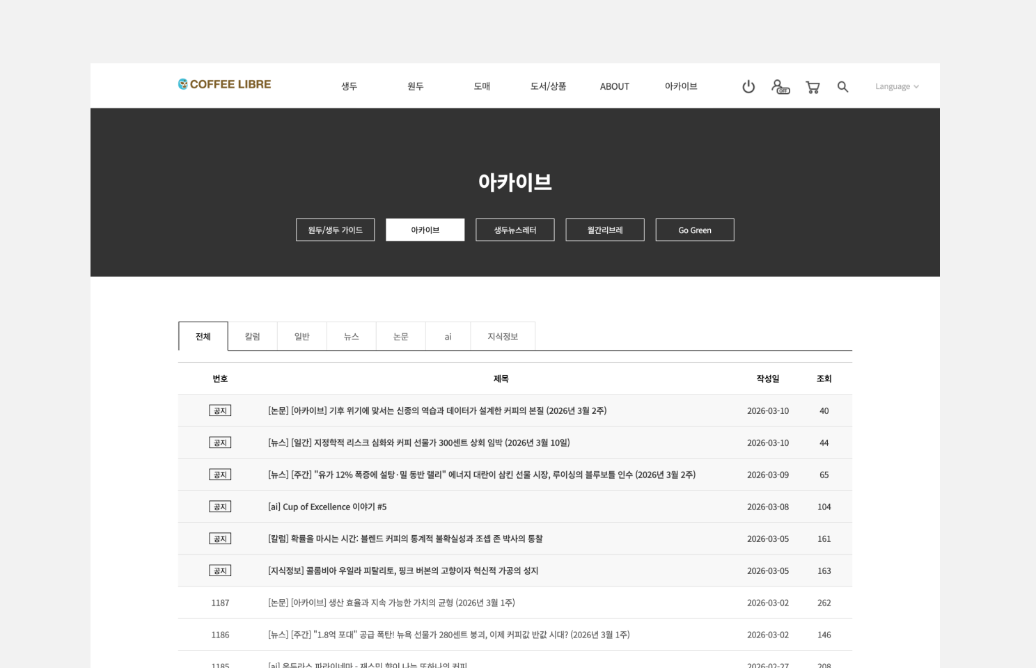 커피리브레는 기록에 진심인 것 같아요. 뉴스레터 외에도 홈페이지, 종이 소식지 등으로 커피에 대한 애정을 보여주고 계시죠.