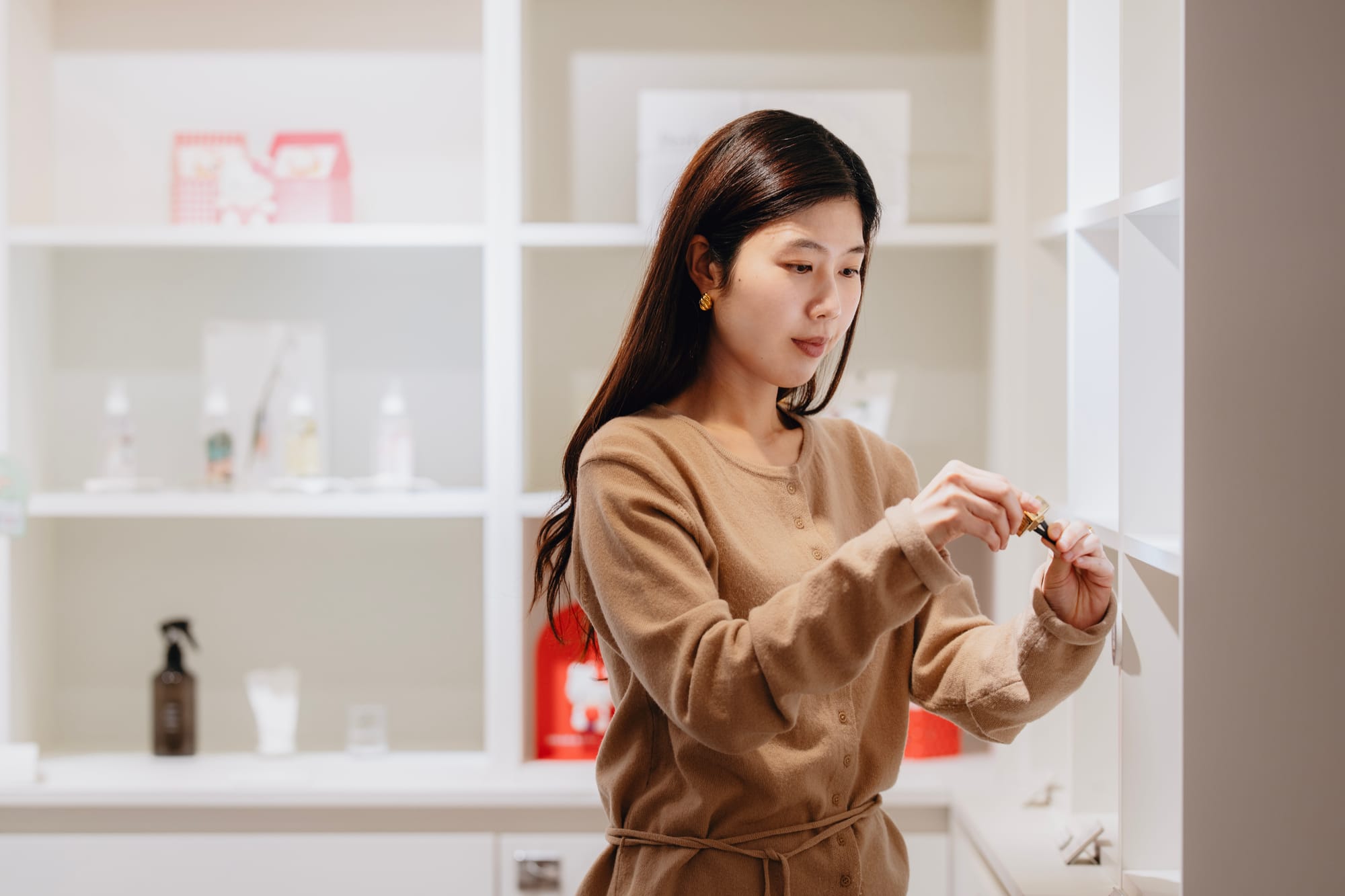 연정: 차량용 방향제는 송풍구 컷을 자주 활용하게 되는데, 구조가 비슷하다 보니 변화를 주는 게 쉽지 않았어요. 그래서 팀에서 논의 끝에, 디자인에 맞춰 차종을 달리해 촬영하는 방식을 시도했어요. 미니멀한 디자인의 자사 제품은 세단에서, 귀여운 인상이 강한 산리오 협업 제품은 피아트처럼 아기자기한 차에서 촬영하는 식이에요.