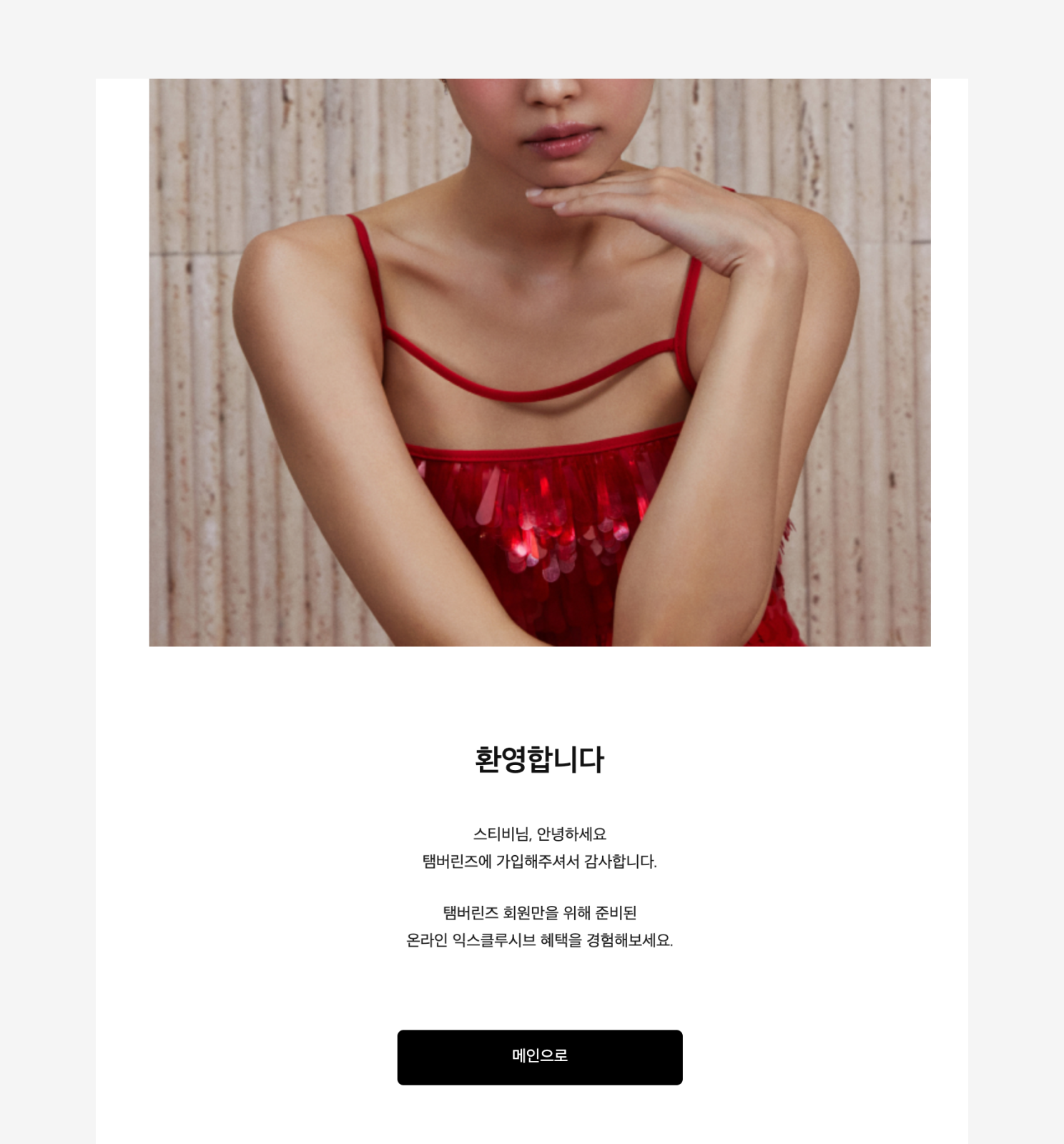 - 웰컴 이메일 제목: [TAMBURINS] 회원가입을 축하드립니다.